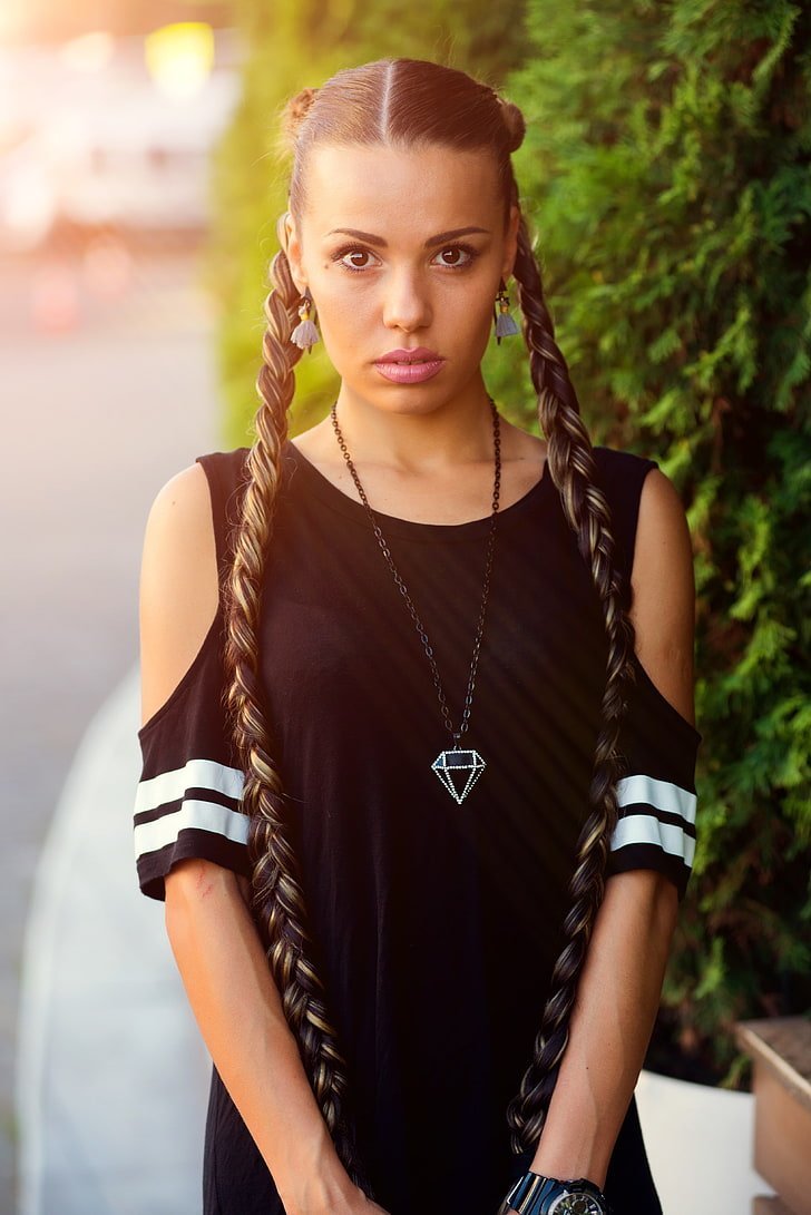 30. Картинка Девушка блондинка с косами стильная