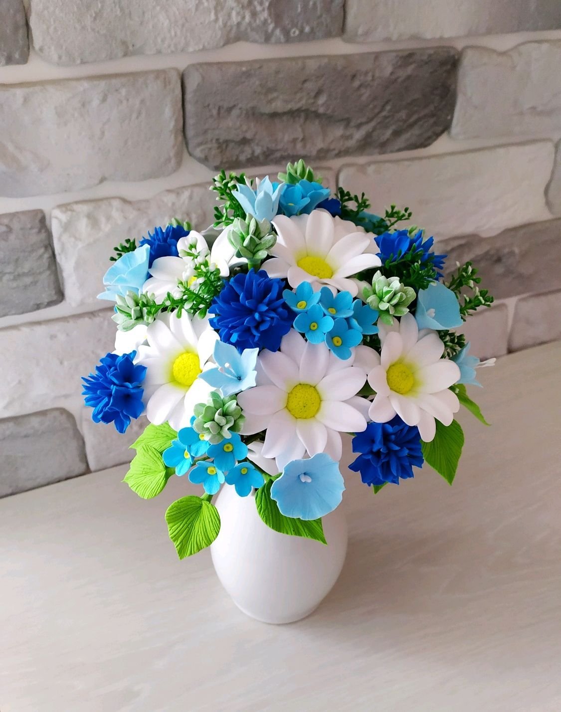 34. Картинка Букет из Васильков и ромашек из фоамирана