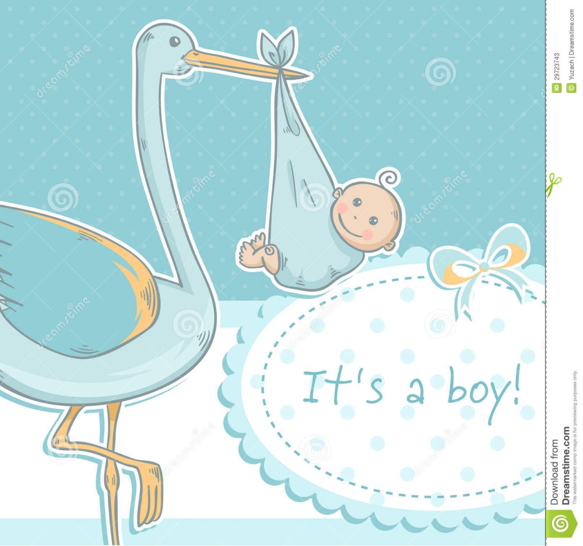 41. Картинка Открытка для новорожденного мальчика с аистом