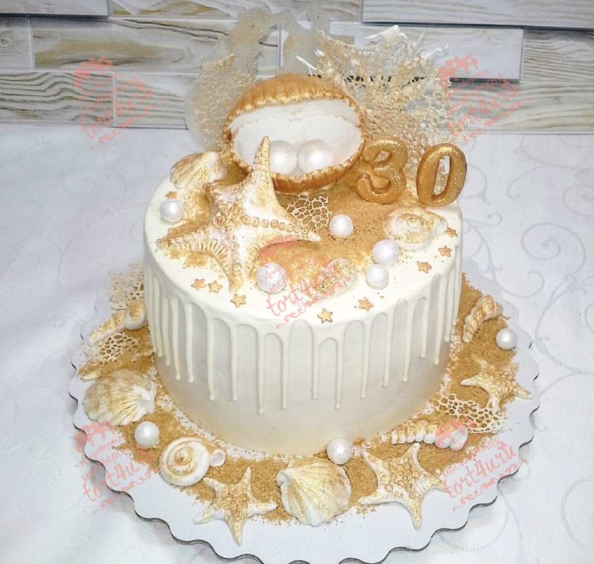 12. Картинка Торт с ракушкой и жемчугом