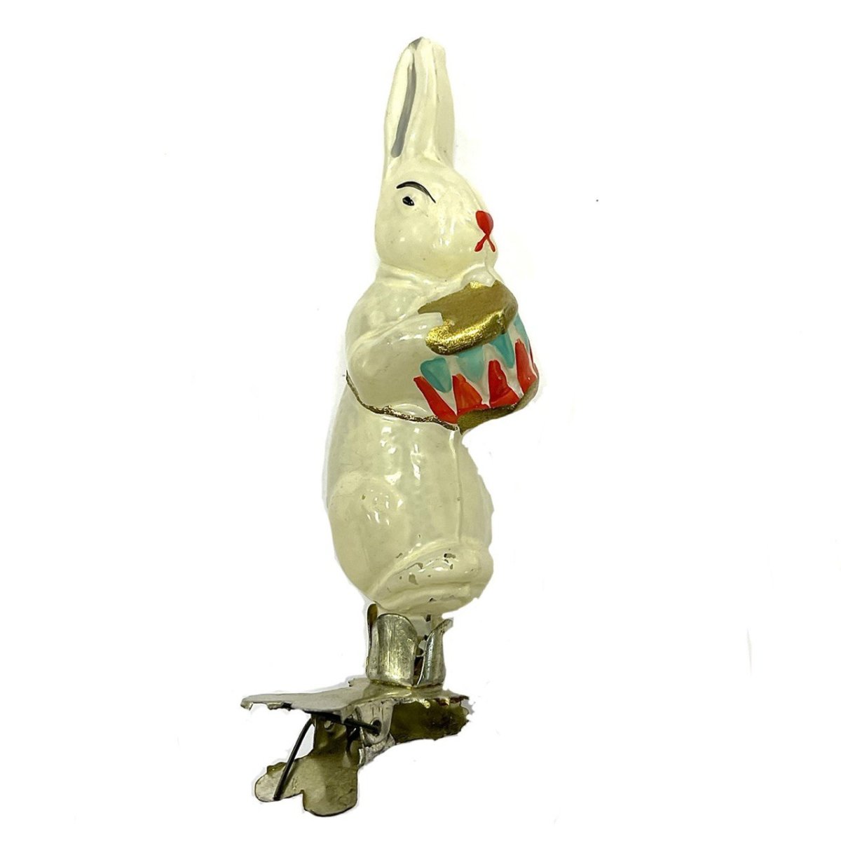 51. Картинка Елочная игрушка зайчик с барабаном на прищепке