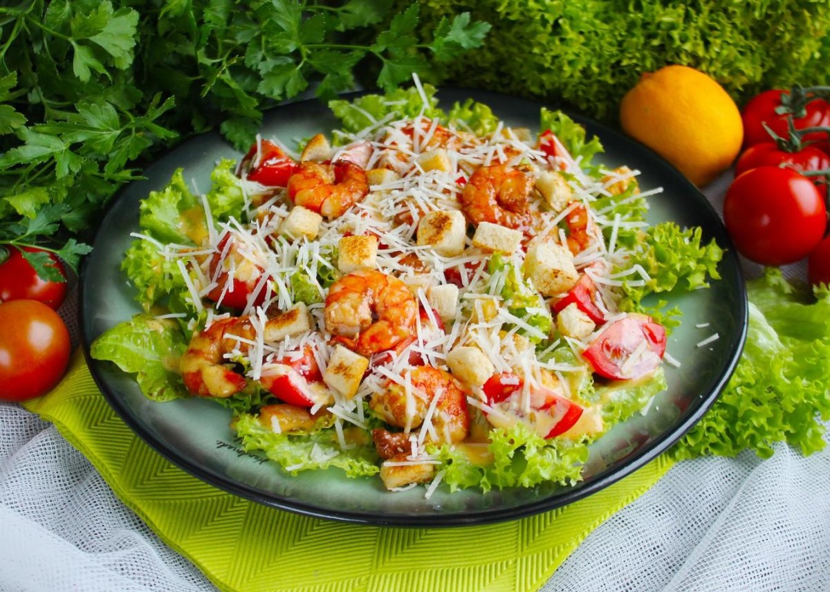59. Картинка Салат Цезарь с курицей и креветками