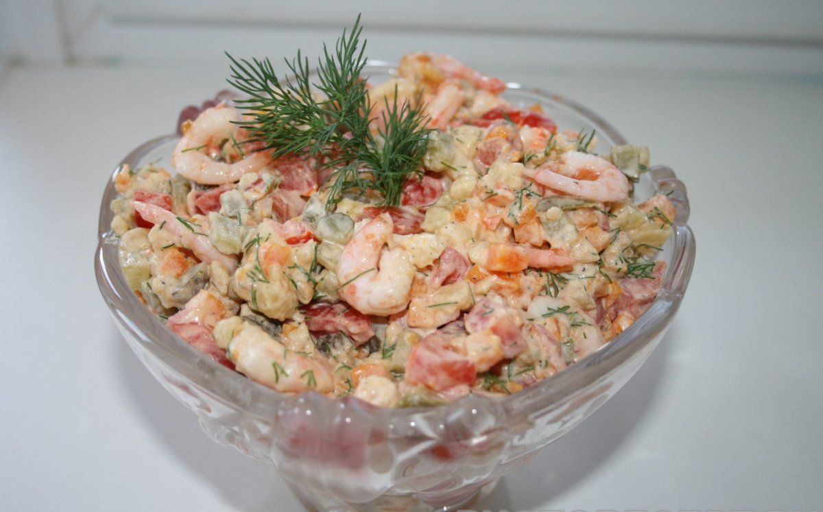 40. Картинка Салат Оливье с креветками