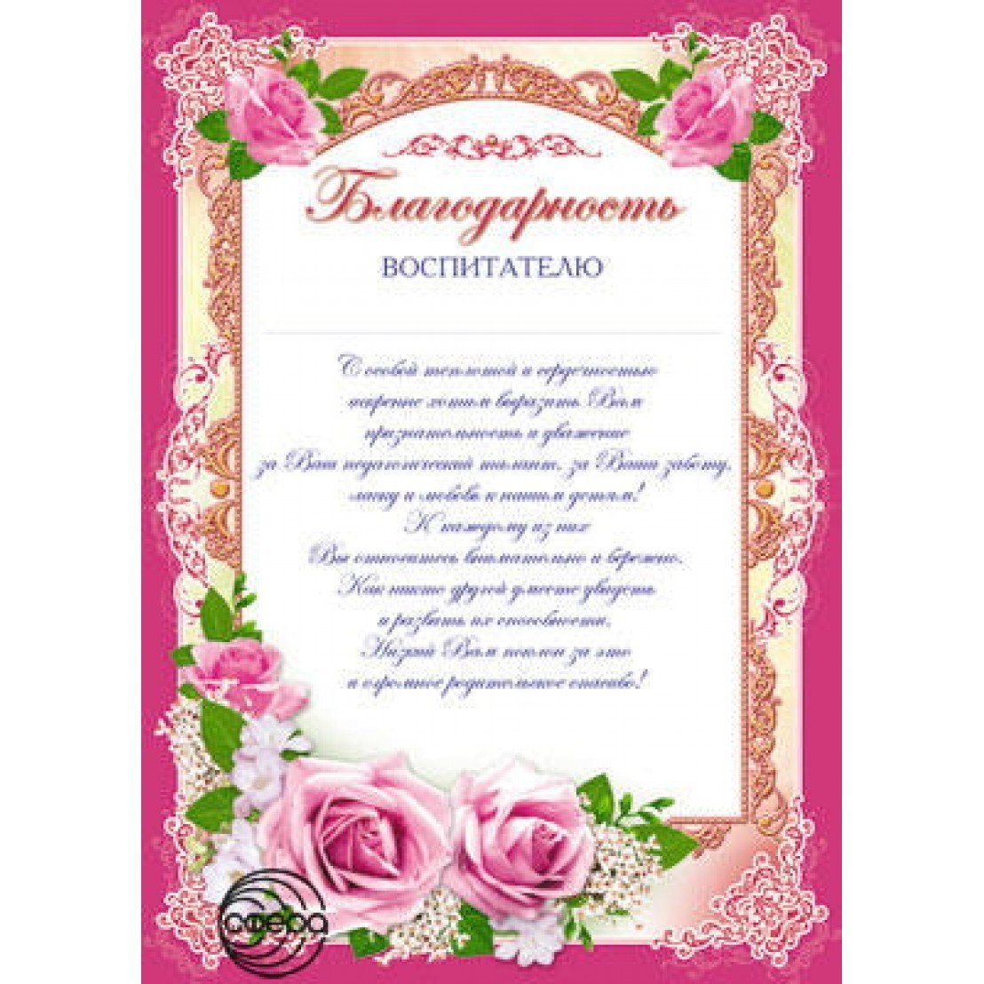 24. Картинка Благодарственное письмо воспитателю детсада