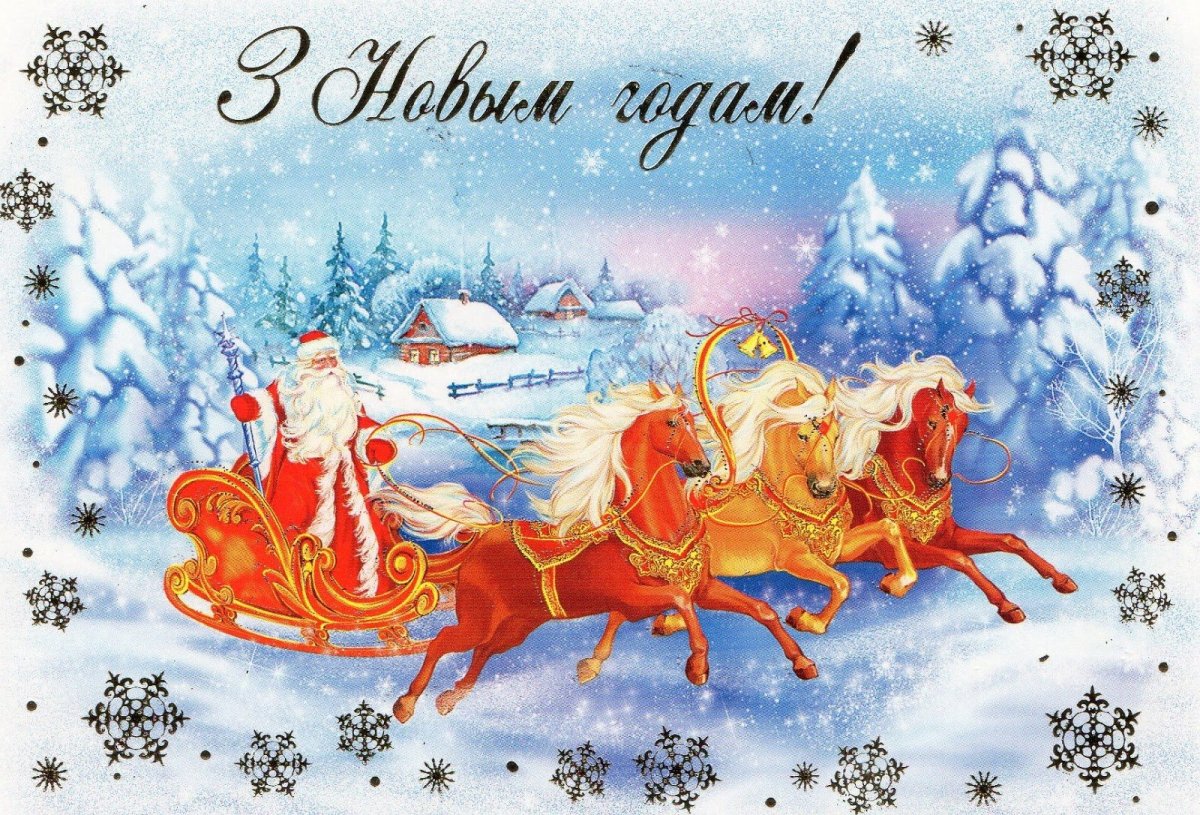 32. Картинка Новогодняя тройка лошадей