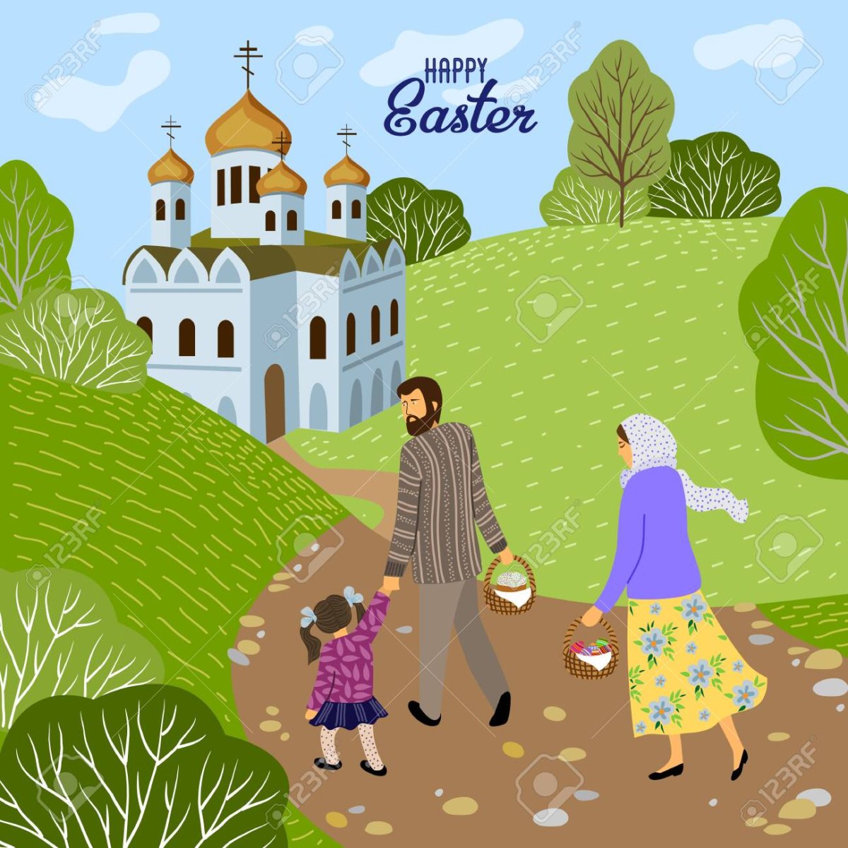 12. Картинка Пасха храм вектор