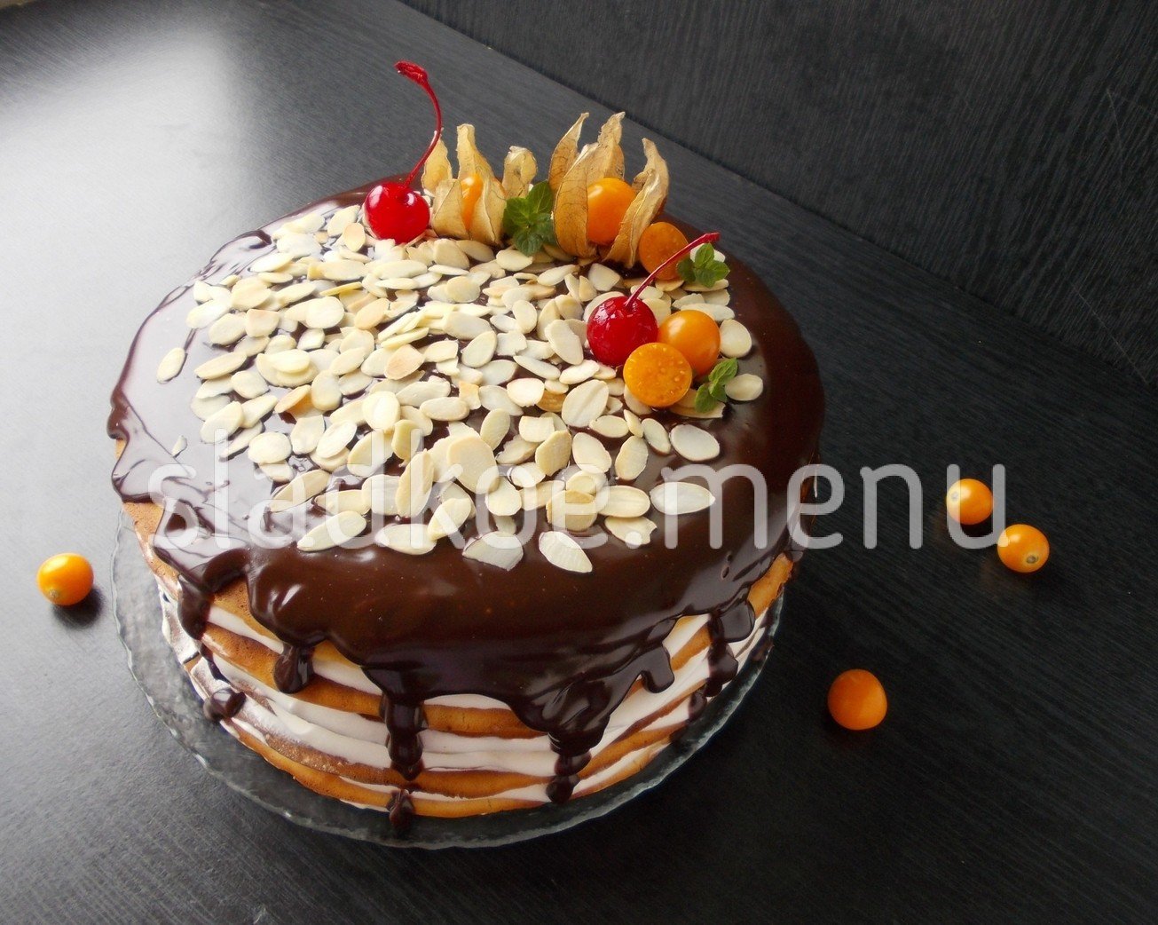 19. Картинка Шоколадный торт с миндальными лепестками