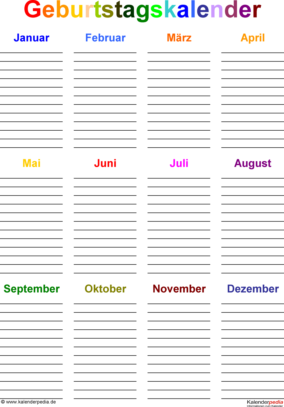 9. Картинка Календарь дней рождений шаблон