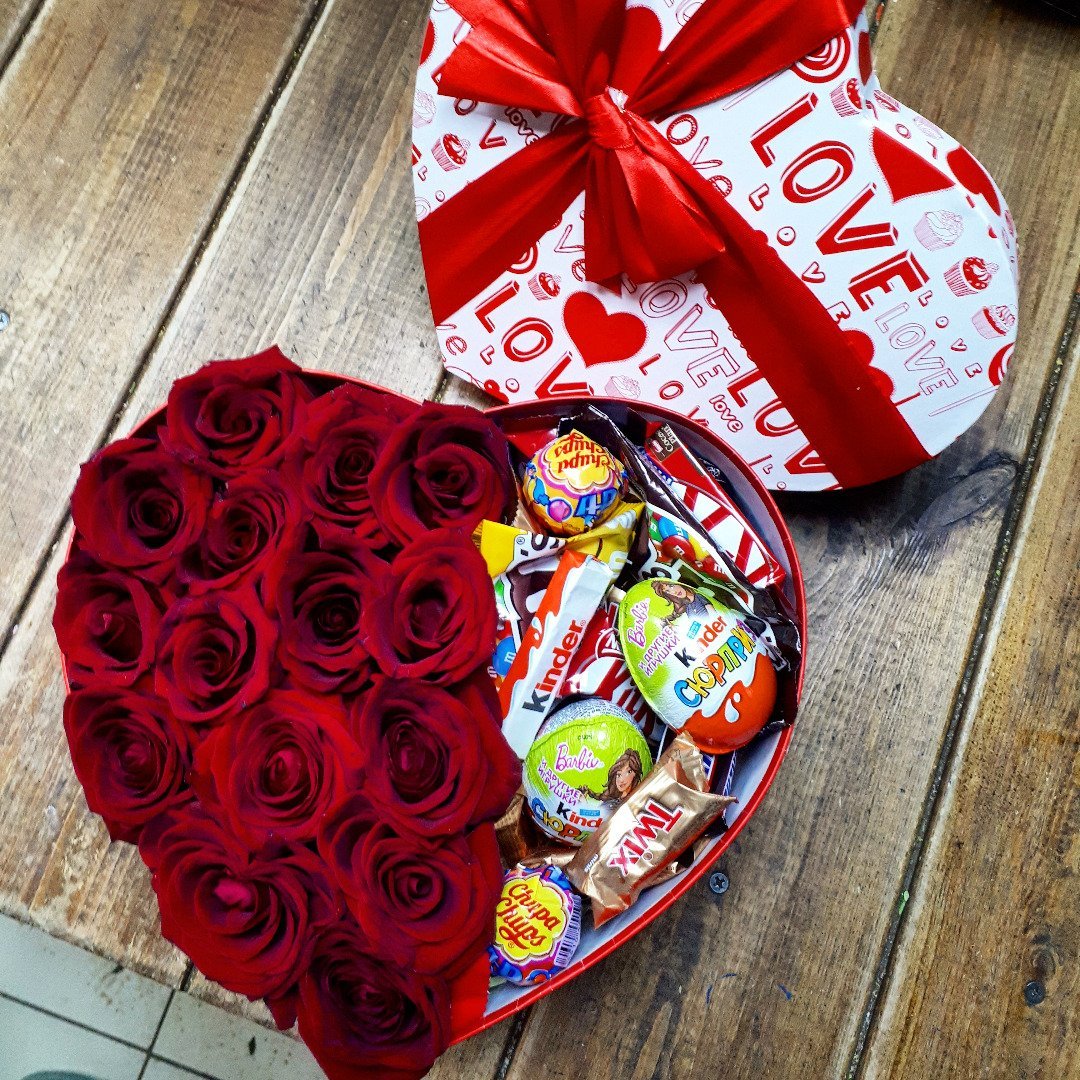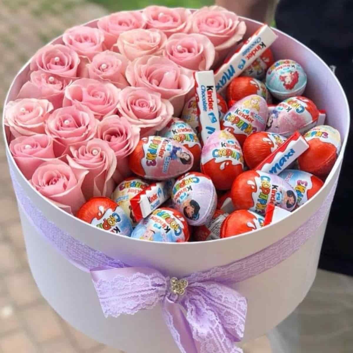 7. Картинка Подарок девушке цветы и киндеры