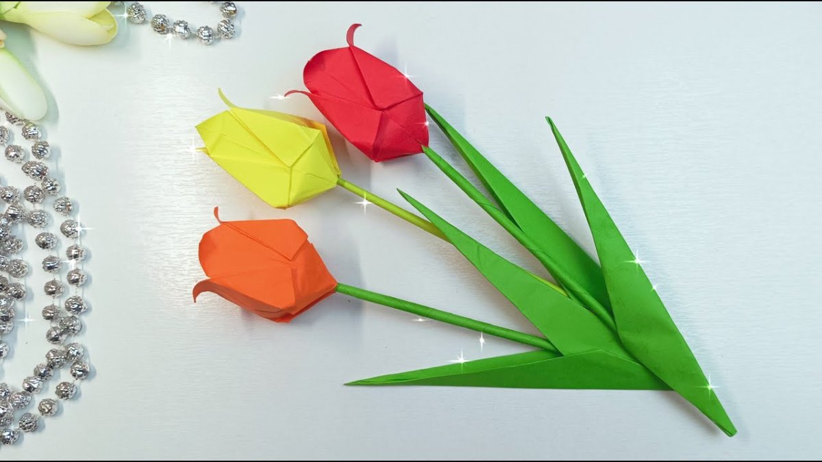 Объемный тюльпан из бумаги